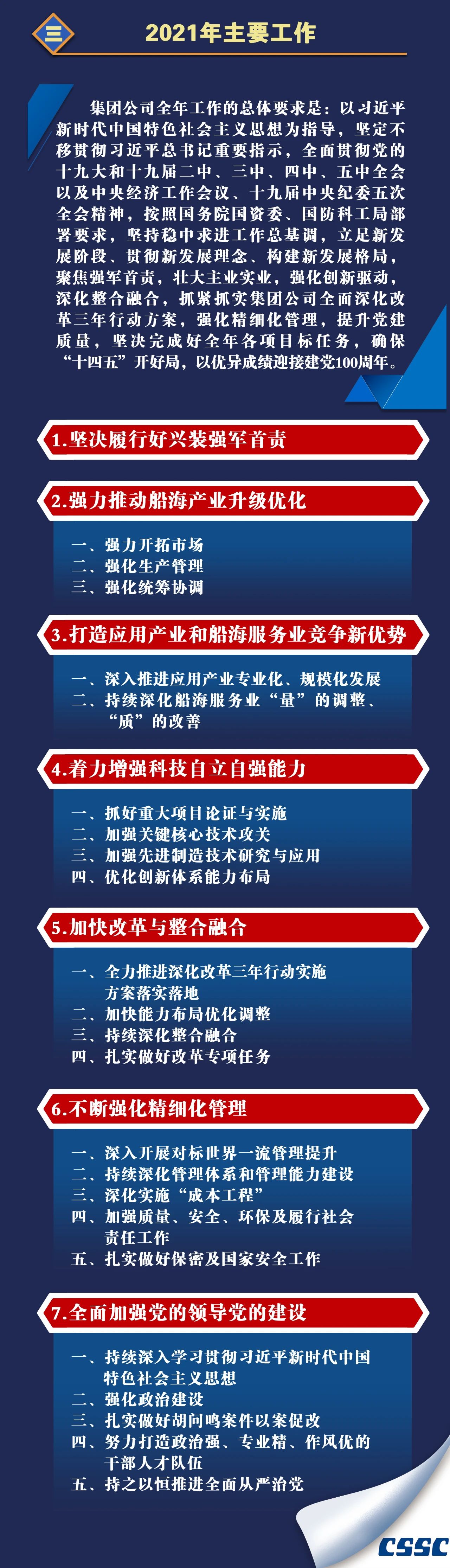 1月27日,在中國船舶集團有限公司2021年度工作會議上,中國船舶集團黨組書記、董事長雷凡培作了題為《貫徹新發(fā)展理念 強化精細化管理 為加快建設世界一流船舶集團不懈奮斗》的工作報告。