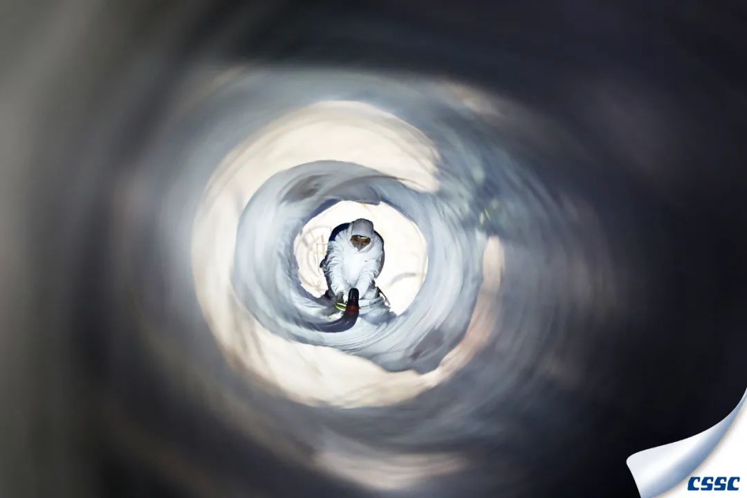 細節見真章,“中裝人”發揚“三線”精神,艱苦奮斗、創新拼搏。我們用鏡頭記錄下那一道“美麗”的風景!圖中是啟閉機缸筒內孔加工,因為它的超長、超粗,也讓其成為了工藝攻關的難點。我們的工作人員需要長時間爬進缸筒,確保每一寸都達到要求,而這一爬就是多半天,但“中裝人”相信只要功夫深,鐵桿磨成針,正是他們的努力,才讓內孔呈現出鏡面的效果。