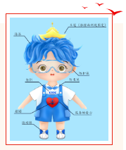 設計說明:該作品命名為小王子,是把每一個共青團員都比作是造船業的孩子,船舶行業的小主人。小王子以Q版的男孩形象體現青年朝氣蓬勃的精神。衣服上的心形圖案體現小主人甘于奉獻,積極熱情,王冠是以船艏部方向剖視圖轉化而來,同時也代表了欲戴其冠,必受其重,希望我們的小主人能夠積極向上,攻堅克難,頑強拼搏,逢山開路,遇河架橋的工匠精神。