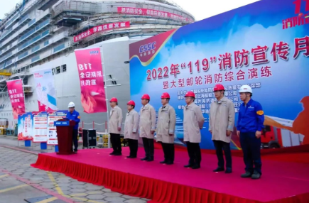 船舶建造過程中動(dòng)火作業(yè)多、交叉作業(yè)多、有限空間多,消防安全一直以來都是企業(yè)安全生產(chǎn)工作的重點(diǎn)。本次演練選取大型郵輪作為演練對象,情景模擬船上發(fā)現(xiàn)火情后,外高橋造船以及聯(lián)合演練單位的消防隊(duì)伍實(shí)施協(xié)同救援,包括初期火情應(yīng)對、應(yīng)急報(bào)告、船上人員疏散、被困人員搜救、滅火等內(nèi)容,檢驗(yàn)了企業(yè)應(yīng)對突發(fā)火情的快速反應(yīng)能力和協(xié)同作戰(zhàn)能力。
