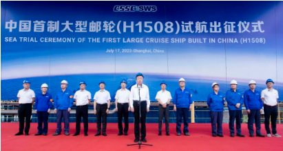 7月17日清晨7時許,隨著中國船舶集團(tuán)有限公司黨組書記、董事長溫剛一聲令下,白色涂裝、流線型船體、身系“敦煌飛天彩帶”的首艘國產(chǎn)大型郵輪“愛達(dá)·魔都號”緩緩駛出中國船舶集團(tuán)外高橋造船4號碼頭,正式出海試航。集團(tuán)公司黨組成員、副總經(jīng)理盛紀(jì)綱出席試航出征儀式并致辭。