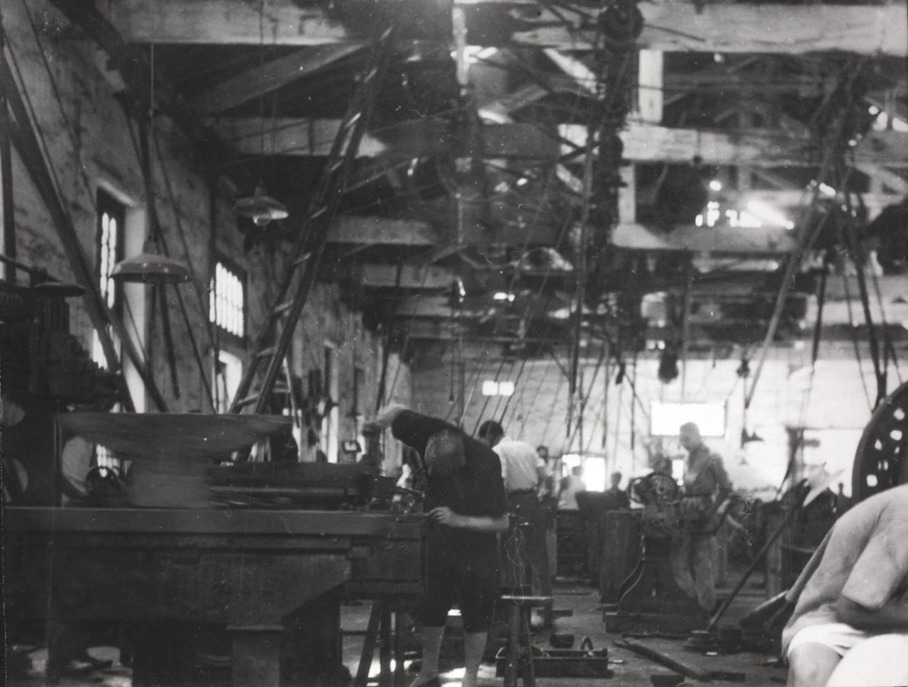1934年武漢,上世紀30年代,武昌造船成立之初,工人們以手工作業(yè)“敲敲打打”形式開展修造船業(yè)務(wù)。修造的船只大多為100~300噸、鋼肋骨與木殼結(jié)構(gòu),僅有少量是鋼鉚接船體。建造的船只只能在長江上航行跑跑運輸。為了生存和救國,船廠還建造一些農(nóng)用機械器具、槍支,以輔助民生、支援抗日。