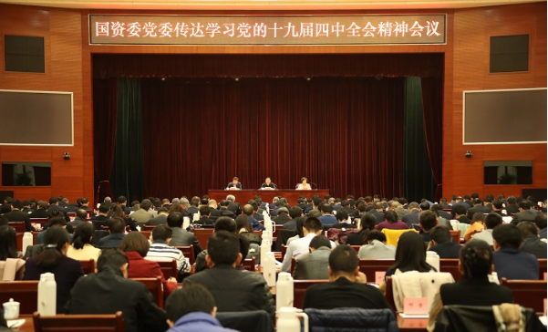 ????11月8日,國資委黨委召開傳達學習黨的十九屆四中全會精神會議,對國資委直屬機關(guān)、中央企業(yè)和直管協(xié)會學習貫徹落實工作進行部署安排。國資委黨委書記、主任郝鵬結(jié)合參加黨的十九屆四中全會現(xiàn)場聆聽習近平總書記重要講話的切身體會,結(jié)合國資國企實際作了宣講,強調(diào)要深入學習貫徹黨的十九屆四中全會精神特別是習近平總書記在全會上的重要講話精神,增強“四個意識”、堅定“四個自信”、做到“兩個維護”,切實把思想和行動統(tǒng)一到全會精神上來,進一步完善國資國企制度體系,深化國資國企改革,增強國有經(jīng)濟競爭力、創(chuàng)新力、控制力、影響力、抗風險能力,做強做優(yōu)做大國有資本,加快培育具有全球競爭力的世界一流企業(yè),為實現(xiàn)“兩個一百年”奮斗目標、實現(xiàn)中華民族偉大復興的中國夢作出更大貢獻。國資委副主任、黨委委員趙愛明傳達了全會公報和《中共中央關(guān)于堅持和完善中國特色社會主義制度、推進國家治理體系和治理能力現(xiàn)代化若干重大問題的決定》(以下簡稱《決定》)主要精神。國資委副主任、黨委委員任洪斌主持會議。