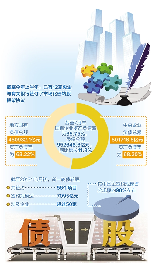 數(shù)據(jù)顯示,截至2017年6月初,我國新一輪債轉(zhuǎn)股共簽約56個項目,簽約規(guī)模達(dá)7095億元,涉及企業(yè)超過50家,其中以國企為主,簽約規(guī)模占總規(guī)模的98%左右。