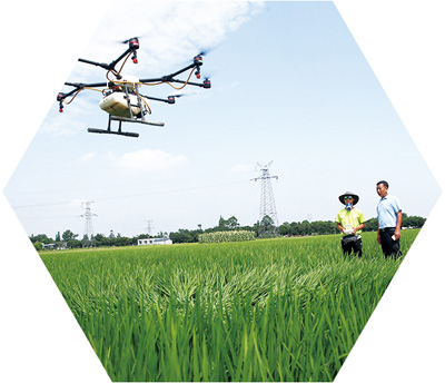 無人植保機在眉山市東坡區鎮南村噴灑農藥。張忠蘋攝