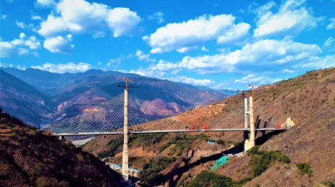 ????日前,由武船集團武船重工股份建造的云南雙河特大橋順利合龍。該橋是一座高低塔組合梁斜拉橋,也是云南省最大的高低塔組合梁斜拉橋,索塔上部采用折H型塔,2號索塔高229米,3號索塔高170米,全橋長705.6米,總用鋼量9750噸,共計61個節段,標準節段長12米,寬28.7米,高2.8米。大橋從今年4月開始吊裝,7個多月時間,即實現了全橋合龍,主橋使用高強螺栓近18萬套,通孔率100%,大橋的合龍精度控制在2毫米以內,充分展示了武船實力和武船速度。