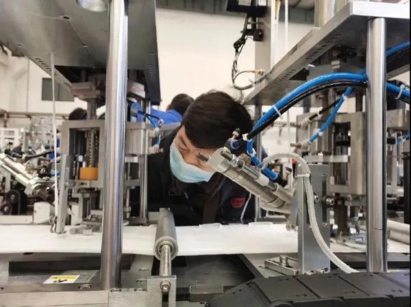 ????就在幾天前,鵬力智造已交付首批口罩機(jī)及防護(hù)服壓條機(jī)。此次交付的N95口罩機(jī)由鼻梁焊接機(jī)、打片機(jī)、耳帶焊接機(jī)三部分構(gòu)成,可生產(chǎn)多種類型折疊口罩,單臺設(shè)備每分鐘最高生產(chǎn)60只口罩。