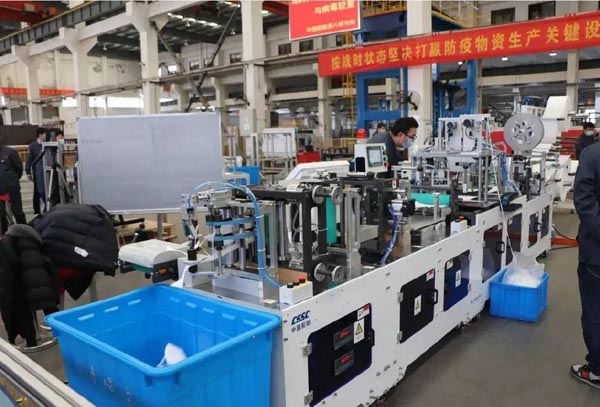 ????3月4日上午,經(jīng)過一場與時間賽跑的生產(chǎn)大戰(zhàn),中國船舶集團(tuán)所屬八院鵬力智造首批N95口罩機(jī)緊急發(fā)往中國石油蘭州石化公司。