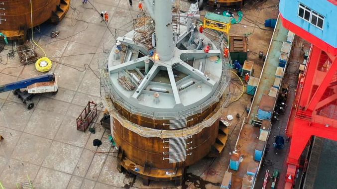 7月31日,廣船國際建造的我國第一臺吸力筒導(dǎo)管架風(fēng)機(jī)基礎(chǔ),在廣州南沙成功發(fā)運。吸力筒導(dǎo)管架是海上風(fēng)電場的基礎(chǔ)設(shè)備,這次交付的吸力筒導(dǎo)管架總高63米,足有20層樓的高度,總重量約為1560噸,相當(dāng)于15輛重型卡車滿載的重量,由3個直徑約為13米、高約11米的吸力筒和高52米的上部導(dǎo)管架組成。