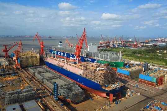 2017年9月19日,經過激烈的市場競爭,中國船舶集團與法國達飛海運集團簽訂了共9艘23000TEU雙燃料動力集裝箱船的建造合同,開啟了中國超大型、雙燃料集裝箱船從中國制造向中國創造歷史性跨越的偉大征程。