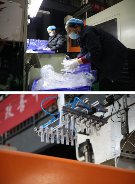 為保障防疫物品供應(yīng),春節(jié)期間,前衛(wèi)公司精密模塑產(chǎn)業(yè)生產(chǎn)車(chē)間24小時(shí)不停機(jī)。各機(jī)臺(tái)滿負(fù)荷運(yùn)轉(zhuǎn),每天生產(chǎn)咽拭子棉簽棒1000萬(wàn)支,一次性保存管70萬(wàn)支,為全國(guó)核酸檢測(cè)能力的提升提供了強(qiáng)有力的保障。
