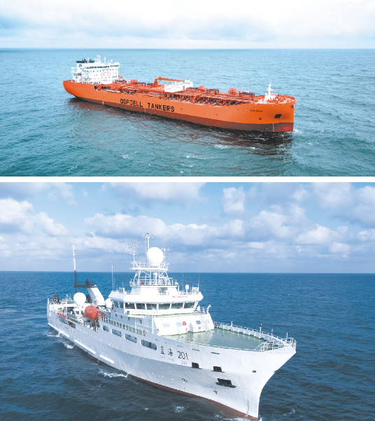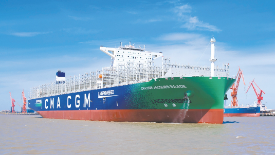 ——2020年9月,自主建造交付世界上首艘以LNG 為主要?jiǎng)恿Φ膰嵨蛔畲蟆⒓墒澜缱钕冗M(jìn)技術(shù)、環(huán)保性能最優(yōu)的23000TEU雙燃料動(dòng)力集裝箱船“達(dá)飛雅克·薩德”號(hào),并實(shí)現(xiàn)批量交付,進(jìn)一步鞏固了滬東中華在超大型集裝箱船建造領(lǐng)域的行業(yè)領(lǐng)軍地位。這艘被譽(yù)為海上“綠巨人”的雙燃料動(dòng)力集裝箱船,備受業(yè)界廣泛關(guān)注,她的成功建成交付是我國船舶工業(yè)高質(zhì)量發(fā)展取得的重要成果,彰顯了滬東中華雄厚的建造實(shí)力,也標(biāo)志著中國船舶集團(tuán)在世界大型集裝箱船領(lǐng)域成功實(shí)現(xiàn)從跟隨到引領(lǐng)。