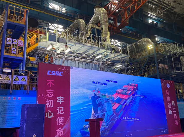 4月2日,中國船舶集團旗下中船動力集團自主研發的船用低速雙燃料發動機(CX40DF)首臺機在江蘇鎮江正式出廠交付。