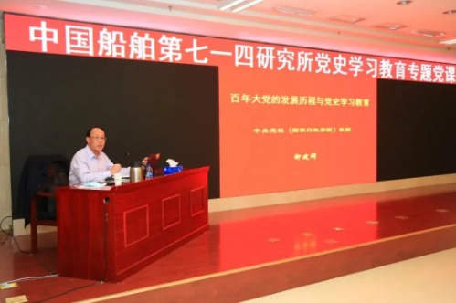 七一四所黨委開設黨史專題讀書班,領導班子成員結合工作實際、領學解讀規定書目的重點篇章,讀原著、學原文、悟原理;邀請中央宣講團成員、中央黨校原副教育長、教務部主任柳建輝作宣講報告;組織開展“我看建黨百年新成就”主題調研活動,所老專家、老干部以耳聞目見、親身經歷講黨史、講船舶發展史,帶動黨員特別是青年員工進一步堅定理想信念,矢志不渝奮斗;各黨支部紛紛組織專題黨課、讀書班以及沉浸式學習等活動,學史明理、學史增信、學史崇德、學史力行。
