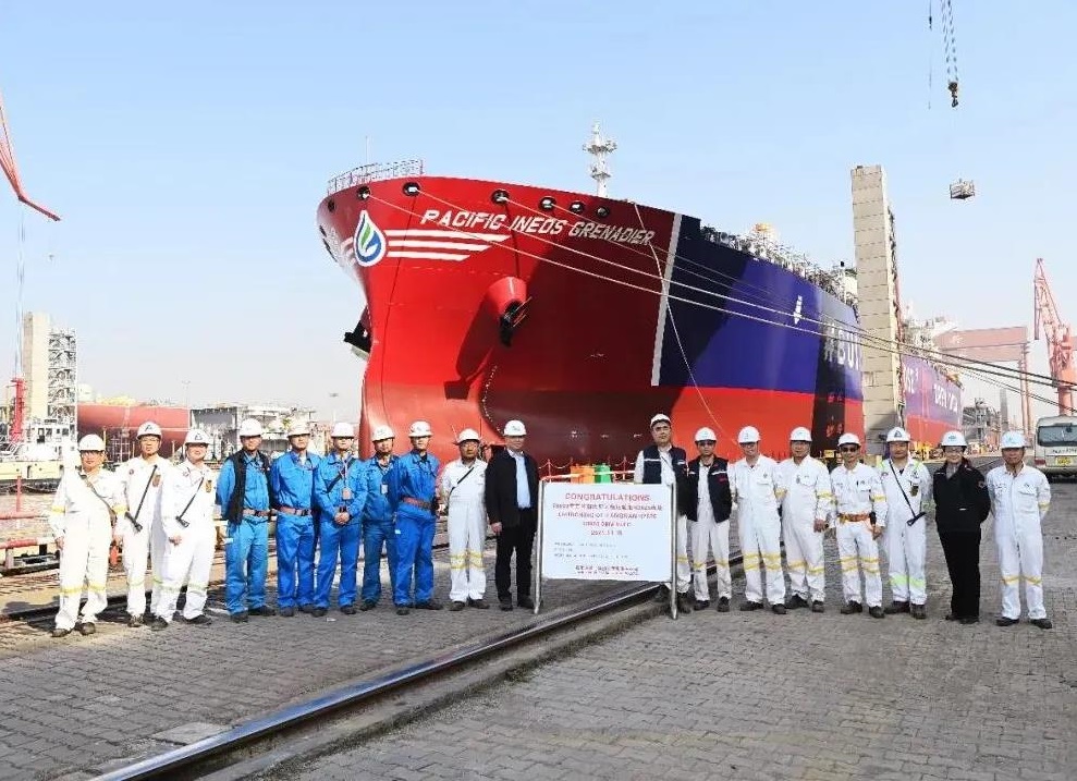 對比首制船,該艘船塢內周期縮短了30%,為后期按時出塢,爭取了有利條件。該船未來投入航運市場,將成為目前世界上最大的運輸乙烷/乙烯運輸船。