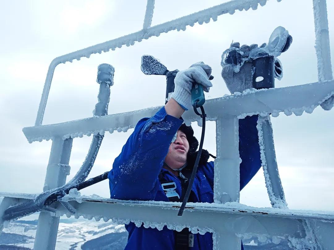 在遼寧昌圖天橋山項目,面對大雪降溫天氣,全體員工為保障風電機組安全正常運行,合力推車前往機位搶修。為恢復(fù)機組正常運行,運維人員人工給風速風向儀除冰。風雪之中,總有人穿風沐雪,在逆行在奮戰(zhàn),他們浴“雪”奮戰(zhàn),卻說高處能勝寒。
