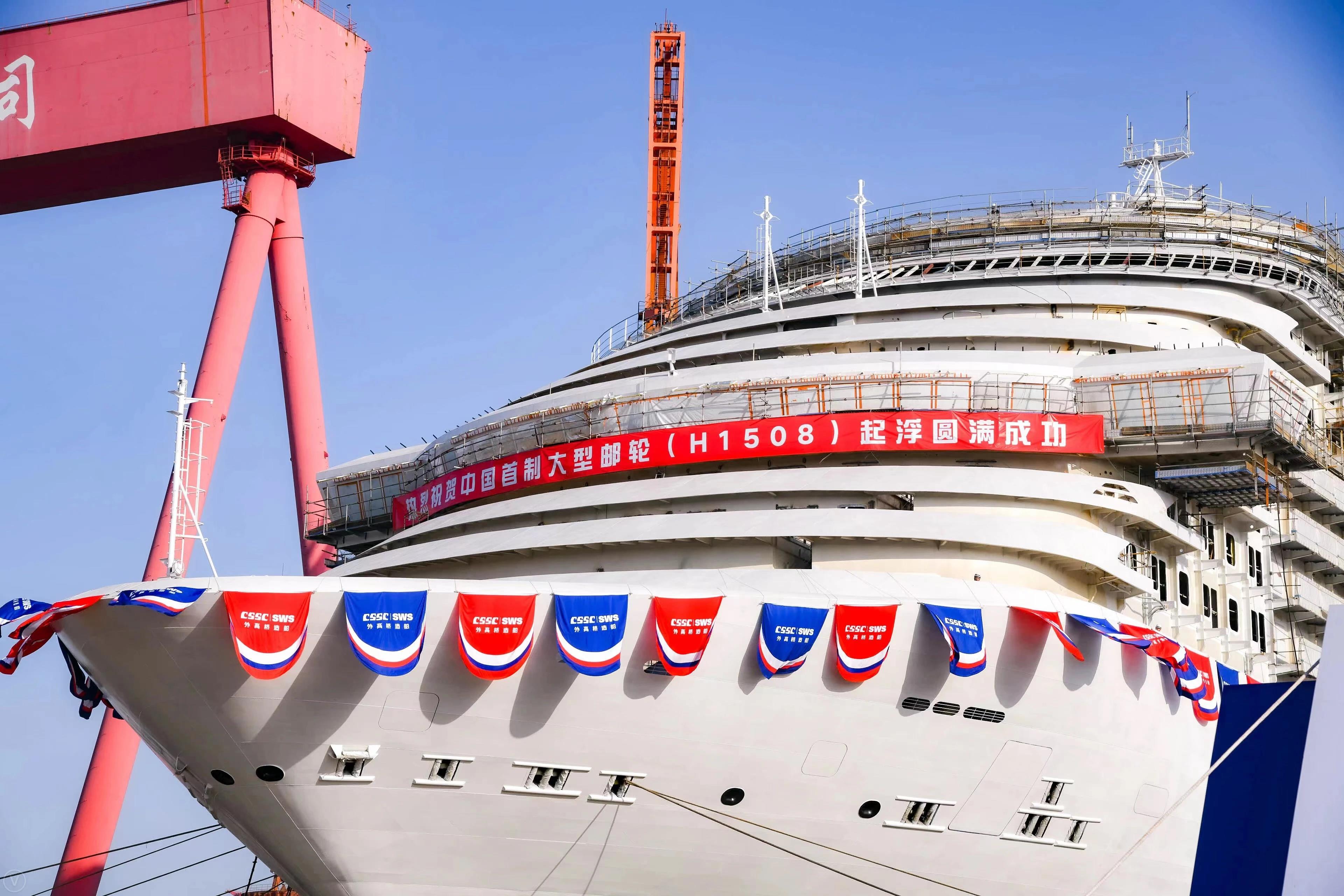 2021年12月17日,由中國船舶集團(tuán)旗下外高橋造船建造的中國首制大型郵輪順利實現(xiàn)塢內(nèi)首次起浮里程碑節(jié)點(diǎn),宣告結(jié)構(gòu)和舾裝建造的“上半場”圓滿收官!