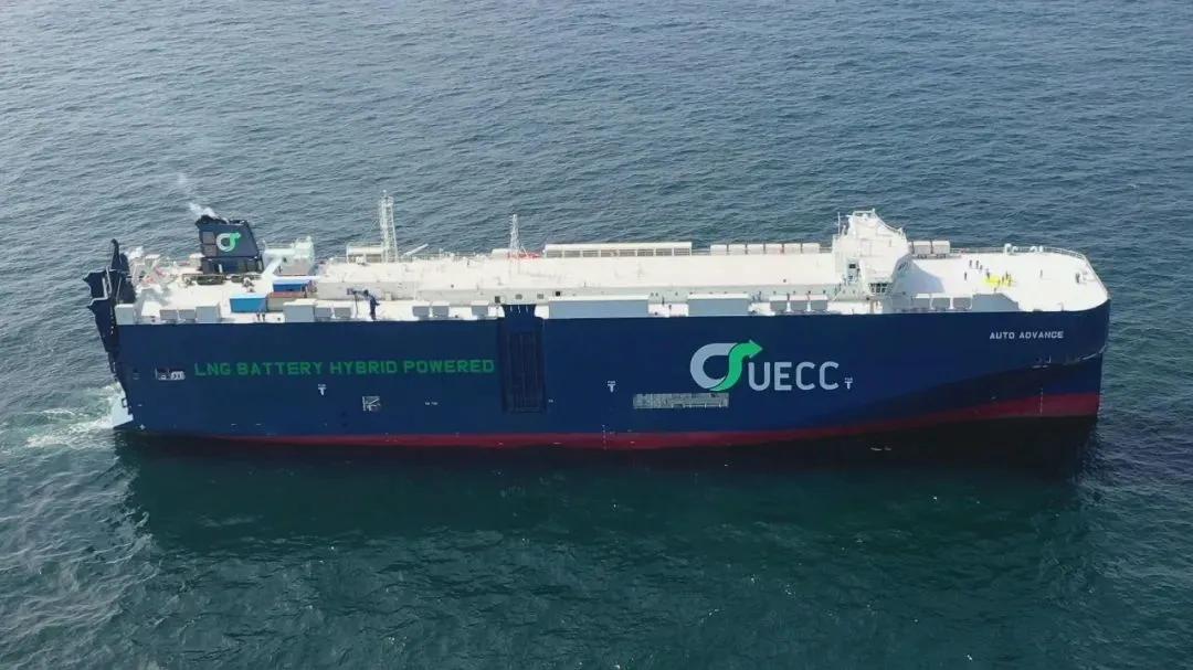 “AUTO ADVANCE”號是江南造船為挪威UECC公司建造的3600車汽車運輸船(PCTC)首制船,于今年11月26日交付。該船由上海船院設(shè)計,是世界上首艘LNG雙燃料+電池混合動力+EMS能源管控系統(tǒng)的汽車運輸船。