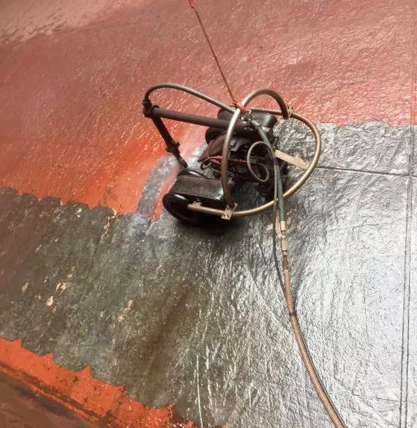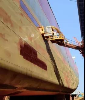 2020年,公司在水霧噴砂基礎上引進了8套超高壓水除銹設備,并通過引進技術自主研發(fā)爬壁機器人,進一步壓減修船除銹粉塵的產生量,從根源上解決了船舶除銹帶來的揚塵問題。