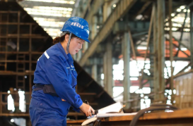 當首制船交付時,烏曉紅的團隊贏得了來自荷蘭的項目首席貨艙專家的點名表揚。此后,她又砥礪奮發,負責后續9艘系列化學品船的質量工作,因為品質如金,因為服務細致,因為信任有加,后續船的各項報驗工作始終在“快車道”上行進,滬東中華實現了一艘比一艘好,一艘比一艘快的建造目標。