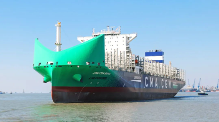 12月7日,由中國船舶集團有限公司旗下滬東中華造船(集團)有限公司聯(lián)合中國船舶工業(yè)貿(mào)易有限公司為法國達飛集團建造的13000TEU液化天然氣(LNG)雙燃料動力大型集裝箱船系列首制船“CMA CGM BAHIA”號,在中船長興造船基地命名交付。這是繼全球首創(chuàng)LNG雙燃料動力23000TEU超大型集裝箱船,滬東中華完工交付的又一款清潔能源集裝箱船,持續(xù)鞏固了其在大型、超大型雙燃料動力集裝箱船建造領(lǐng)域領(lǐng)軍企業(yè)的地位。