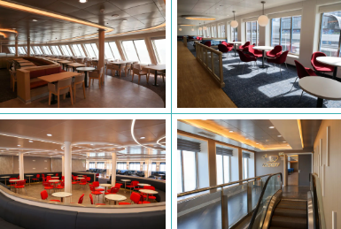 #  高效——配備新型車輛裝載系統,從船艉中央門即可直接上船進入到船上的主車庫,船舷的兩個側門也可以到達上甲板坡道,有效提高了裝卸效率。