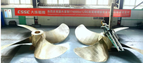 大連公司下屬大連船推成功交付自主開發(fā)設(shè)計(jì)制造的17.4萬立方米LNG運(yùn)輸船雙尾鰭螺旋槳。