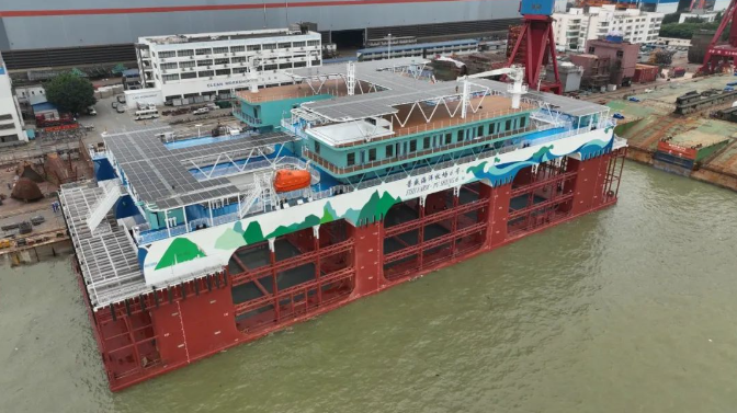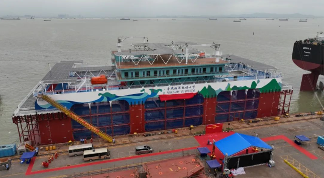 中國船舶集團旗下廣船國際建造的半潛式深遠(yuǎn)海智能養(yǎng)殖旅游平臺“普盛海洋牧場6號”命名交付。