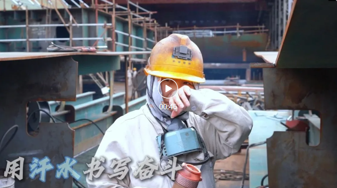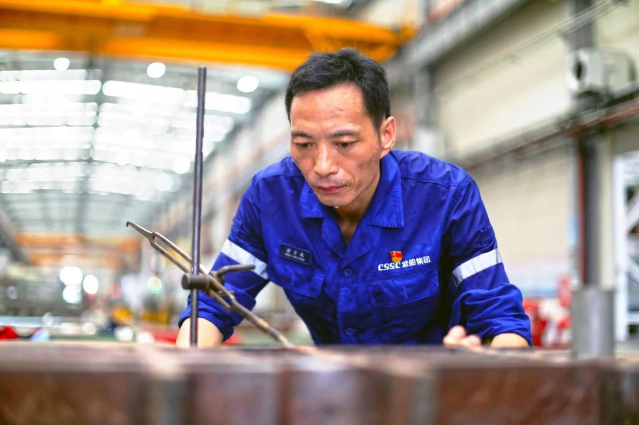 武昌造船——機(jī)電事業(yè)部劃線鉗工翁方成顧不上滿臉的汗水,全神貫注為水工閘門結(jié)構(gòu)部件劃上機(jī)械加工參考線。