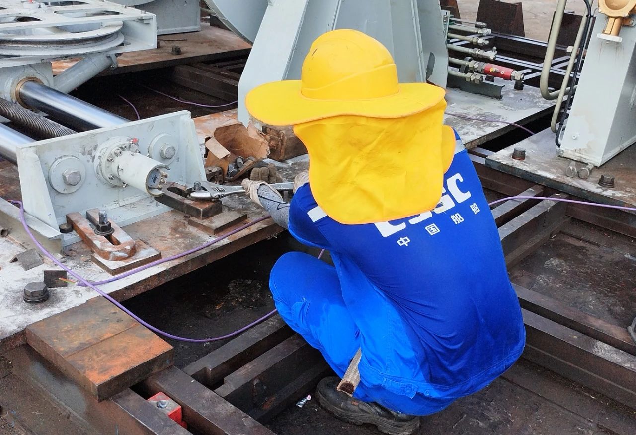 華南船機(jī)——員工頭頂烈日、揮汗如雨,戰(zhàn)高溫、保履約,堅持完成多臺海洋平臺起重機(jī)、箱式起重機(jī)、特種絞車的安裝調(diào)試工作。