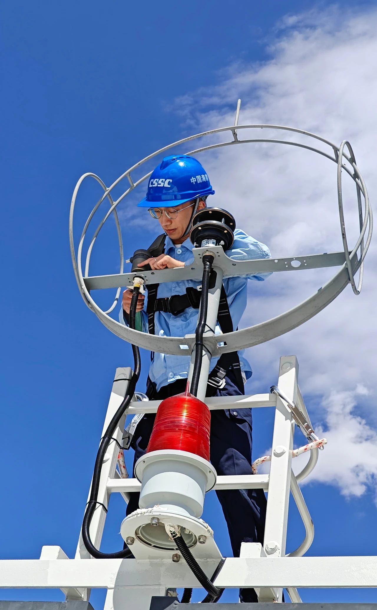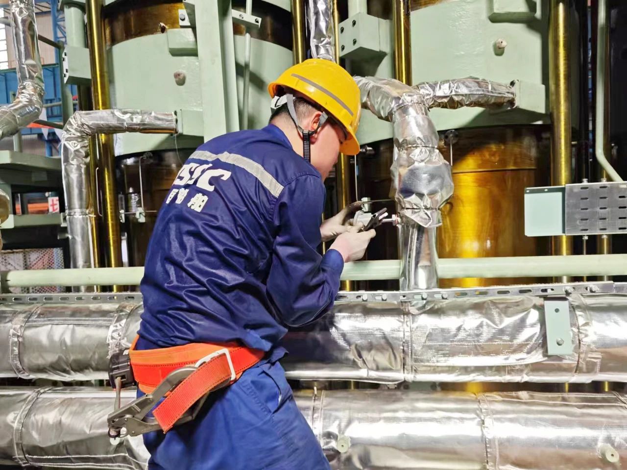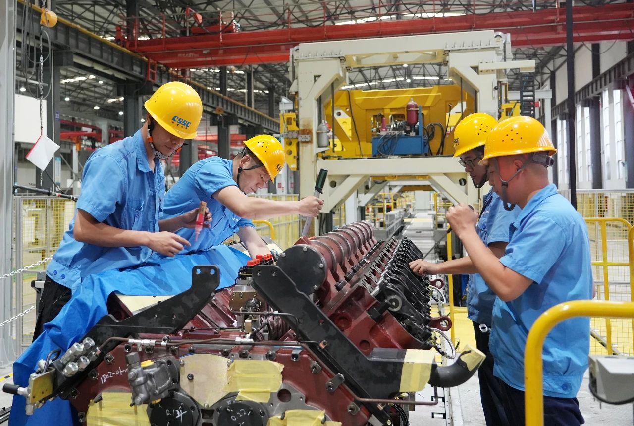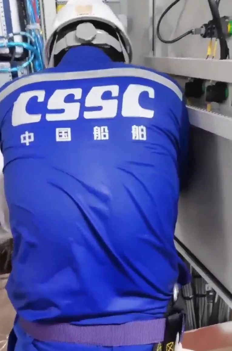 中船發(fā)動機(jī)——調(diào)試人員頂著高溫在認(rèn)真安裝傳感器,汗水濕透了衣裳。