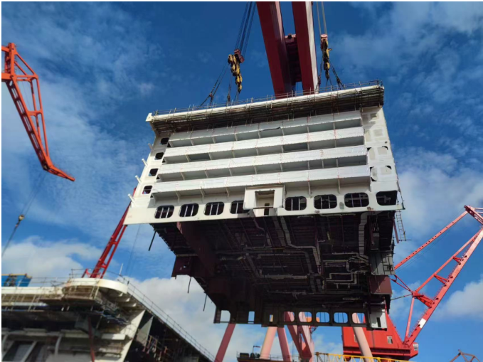 目前,由中國(guó)船舶集團(tuán)旗下外高橋造船建造的第二艘國(guó)產(chǎn)大型郵輪,總組、總段搭載月度計(jì)劃均嚴(yán)格按計(jì)劃達(dá)成,項(xiàng)目已進(jìn)入快速建造期。