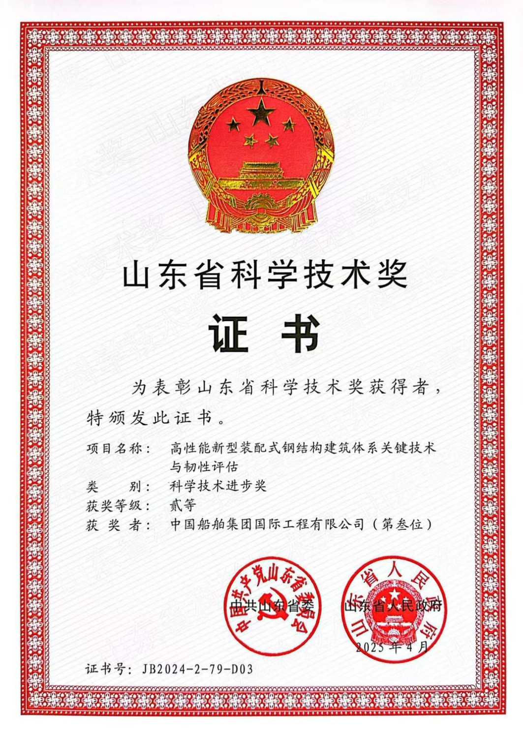 今年6月,國家知識產(chǎn)權局公布第二十五屆中國專利獎授獎決定,由中船集團旗下中船國際工程主導申報的專利《大跨度支座跨中協(xié)同預應力箱形連續(xù)鋼梁柱結構》(專利號:ZL202020680817.9)榮獲本屆中國專利銀獎。該獎項由國家知識產(chǎn)權局與世界知識產(chǎn)權組織聯(lián)合設立,是我國專利領域的最高榮譽。今天,讓我們走進中船國際工程鋼結構工程設計與研發(fā)團隊,聆聽他們的奮斗故事。