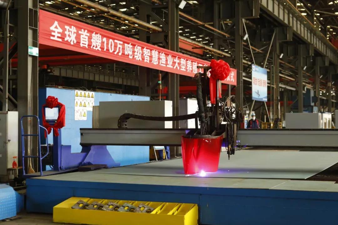 2020年12月19日,全球首艘10萬噸級智慧漁業大型養殖工船“國信1號”在中國船舶集團旗下武船集團所屬北船重工開工建造。