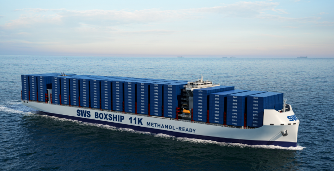 本次簽約的大型集裝箱船,是外高橋造船自主研發設計的新一代綠色環保型大型集裝箱船。該型船是為客戶量身定做,在常規燃料動力雙島設計的基礎上,新增預留了甲醇燃料動力系統。該船可裝載11000個20英尺標準集裝箱,配置脫硫塔,以及擋風墻等多個脫硫、降碳、節能和減阻裝置,將極大優化快速性,大幅降低油耗,減少碳排放,降低運營成本。
