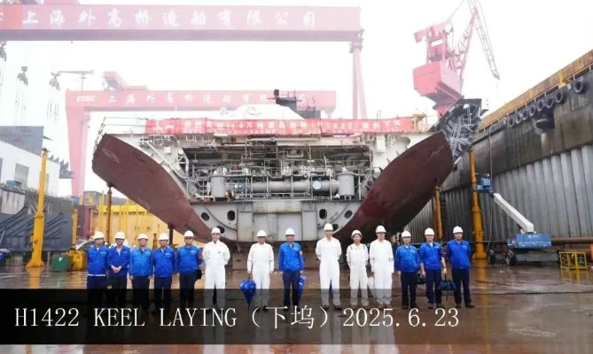 在該船的船建造過程中,建造團(tuán)隊(duì)齊心協(xié)力,與船東船檢密切合作,合理調(diào)配生產(chǎn)資源,統(tǒng)籌物流,確保分段按計(jì)劃及時(shí)供應(yīng),順利完成了總段塞軸裝槳及泵艙完整性目標(biāo)。目前,該船關(guān)鍵路徑分段已全部配齊,整船分段結(jié)構(gòu)全部完工,為下塢后的快速搭載創(chuàng)造了有利條件。
