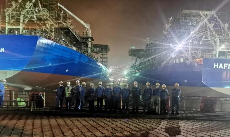 ????進塢后,兩艘船將進行主船體搭載包括主要設(shè)備吊裝、各系統(tǒng)完整及艙室報驗等工作,為吊裝、拼接、合攏做準備。