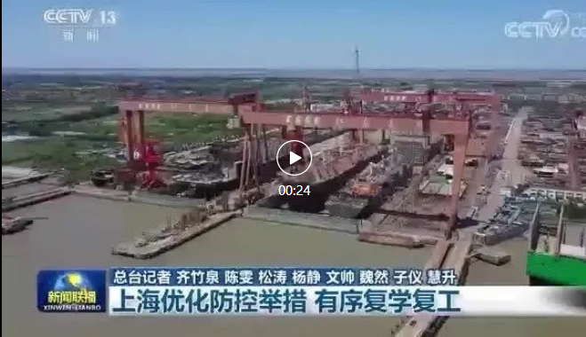新聞聯(lián)播聚焦上海優(yōu)化防控舉措,加快推動(dòng)復(fù)工復(fù)產(chǎn),點(diǎn)贊中國船舶集團(tuán)旗下三大船企都實(shí)現(xiàn)復(fù)工復(fù)產(chǎn)。
