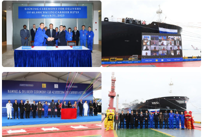 3月31日,中國船舶集團(tuán)旗下江南造船聯(lián)合中船貿(mào)易為日本KUMIAI公司建造的40000立方米中型全冷式液化氣船(MGC)“MIRAI”號順利交付,中央電視臺《新聞聯(lián)播》 《新聞直播間》對此進(jìn)行了報(bào)道。