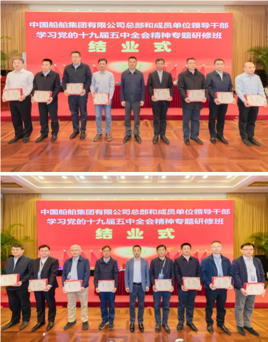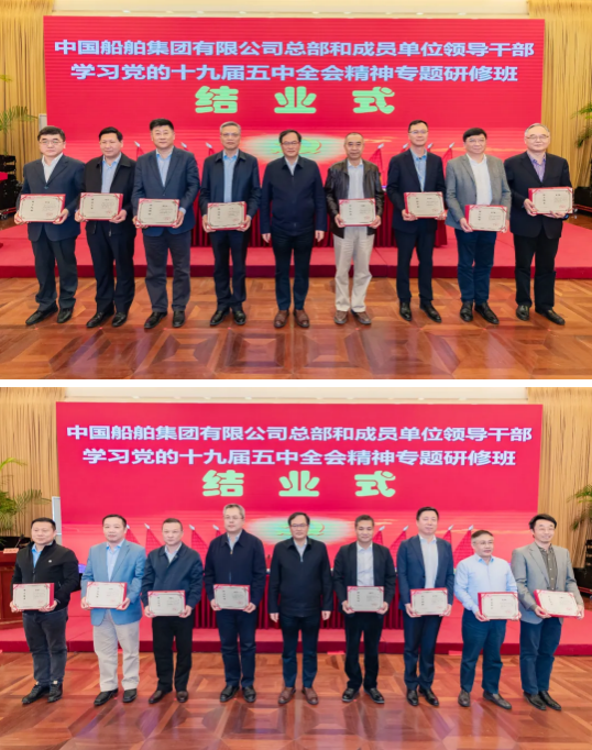 4月23日,中國船舶集團(tuán)有限公司總部和成員單位領(lǐng)導(dǎo)干部學(xué)習(xí)黨的十九屆五中全會(huì)精神和黨史學(xué)習(xí)教育專題研修班圓滿結(jié)業(yè)。培訓(xùn)期間,中國船舶集團(tuán)黨組書記、董事長雷凡培以《深入貫徹落實(shí)習(xí)近平總書記重要指示批示精神 努力加快建設(shè)世界一流船舶集團(tuán)》為題給全體學(xué)員們講授了第一課,中國船舶集團(tuán)黨組副書記、總經(jīng)理?xiàng)罱鸪桑h組成員、副總經(jīng)理孫偉、盛紀(jì)綱以及相關(guān)部門負(fù)責(zé)人先后出席各期結(jié)業(yè)式并聽取了學(xué)員們的學(xué)習(xí)匯報(bào)。