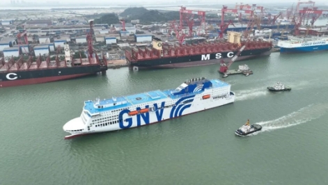 近日,廣船國際還交付了MSC/GNV1785客/3080米車道豪華客滾船“GNV·獵戶座”號和16000TEU雙燃料動力集裝箱船“MSC GIOIA TAURO”號。